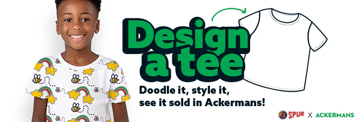 “We believe every child is a creator with extraordinary artistry to share. Through this collaboration, we’re excited to give them a space to express themselves and watch their creativity come to life. The ‘Design a Tee’ campaign is all about celebrating their imagination, putting them at the heart of the creative process, and giving them a chance to design something as unique as they are” said Vuyo Henda, Chief Marketing Officer at Spur Corp. “This initiative bridges our values as Spur and Ackermans, extending well beyond food and fashion, into inspiring the next generation of young artists.”